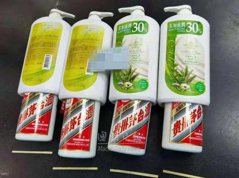 当晚9时左右,海关关员再次查获内地女子庞某,以同样手法藏匿茅台酒4瓶。