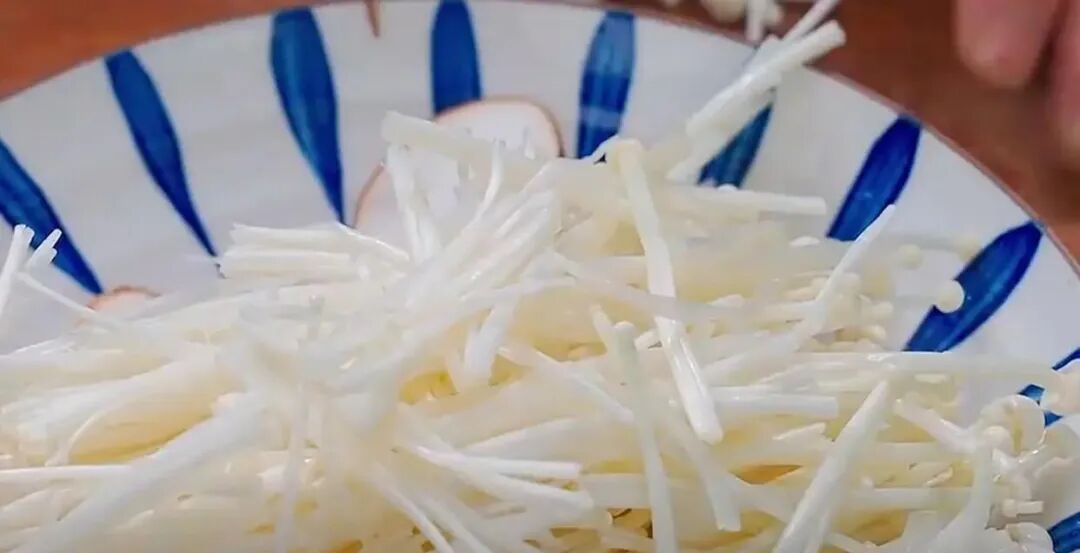 - 准备金针菇跟香菇,香菇切片,金针菇根部去掉就可以了。