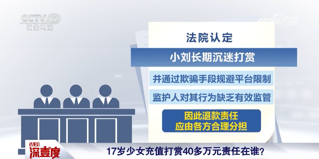 法院认定,直播平台审核措施存在严重疏漏,未能尽到合理审查义务,仅依赖电话确认,未采用更严格的身份核实手段,导致未成年人得以规避限制继续高额消费。同时,小刘长期沉迷打赏并通过欺瞒手段规避平台限制,监护人对其行为缺乏有效监管,因此退款责任应由各方合理分担。