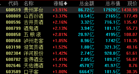 1月5日,白酒板块午后再度拉升,截至发稿,贵州茅台涨近4%报1430.99元;山西汾酒涨超3%,五粮液、古井贡酒、酒鬼酒涨超2%,舍得酒业、泸州老窖等跟涨。 消息面上,“i茅台”上线的1499元飞天茅台,遭到市场疯抢。