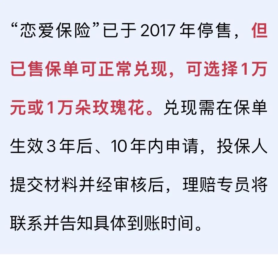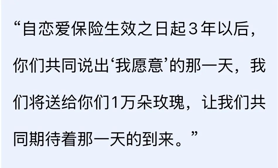 记者了解到,购买此保险的也有遗憾未能兑现的案例。武汉市民刘女士告诉记者,2017年她读大二时,她的大学室友也曾买过恋爱保险,“保费199元,当时她跟她男朋友已经谈了5年,然而大学毕业参加工作两年后,他们分手了。”
