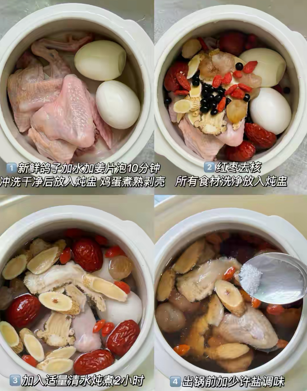 准备黑豆一小碗,核桃仁一小把,猪尾巴一到两条,生姜三片,还有料酒和盐。黑豆提前泡两小时,猪尾巴剁成段冷水下锅加料酒和姜片焯烫捞出洗净,把所有材料放进炖盅加足量纯净水,炖锅里加水放架子,把炖盅放进去盖好盖子,大火烧开转小火慢炖两到两个半小时,出锅只加少许盐就行。隔水炖能最大程度锁住食材原味和营养,汤水清澈不浑浊,核桃仁不用泡直接炖。 黑豆红枣鸽子汤滋补力强还平和,鸽子是动物人参,加黑豆红枣能滋阴润燥清除虚火,适合病后体虚、熬夜后恢复、抵抗力下降的人。 准备黑豆一小碗,鸽子一只,红枣五到六颗,陈皮一小片,生姜两片,还有盐。鸽子让摊主宰杀干净,回家用清水泡十分钟再仔细冲净血水,剁成大块或整只炖都可以,黑豆提前泡发,红枣洗净去核,陈皮用温水泡软刮去内壁白瓤,把所有材料放进炖盅或汤锅加足量水,大火煮开转小火慢炖两小时,出锅前五分钟可加枸杞,最后加盐调味就行。鸽子不用焯水,浸泡洗净即可保留原汁原味,加一小片陈皮能化解腻感让汤味更有层次。 这三款黑豆汤材料都不贵,贵在坚持。每周选一款煲一两次,细水长流地喝,比一时兴起吃补品有用得多。食物的力量温和而持久,不在于一顿多豪华,而在于日复一日对身体的熨帖照顾。这个周末,不妨挑一款试试,让厨房飘起这朴素又温暖的豆香。 来源:经典美食;如有侵权,请联系删除