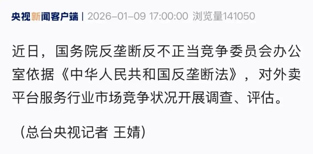 在外卖领域,京东、美团、淘宝闪购2025年初再度掀起价格战,平台商家被迫卷入这场竞争,以超低餐品价格来换取平台的流量支持。这是过去外卖平台、电商平台惯用的伎俩,然而这一次被官方迅速叫停,2025年5月官方约谈相关企业,要求平台不得胁迫商家参与内卷式价格战。2026年1月9日,国务院反垄断反不正当竞争委员会办公室发布消息,依据《中华人民共和国反垄断法》,对外卖平台服务行业市场竞争状况开展调查、评估,称“外卖平台加剧行业‘内卷式’竞争,社会各方面反映强烈”。这实际上是以反垄断的名头,反外卖平台的内卷。