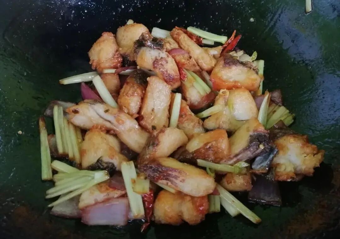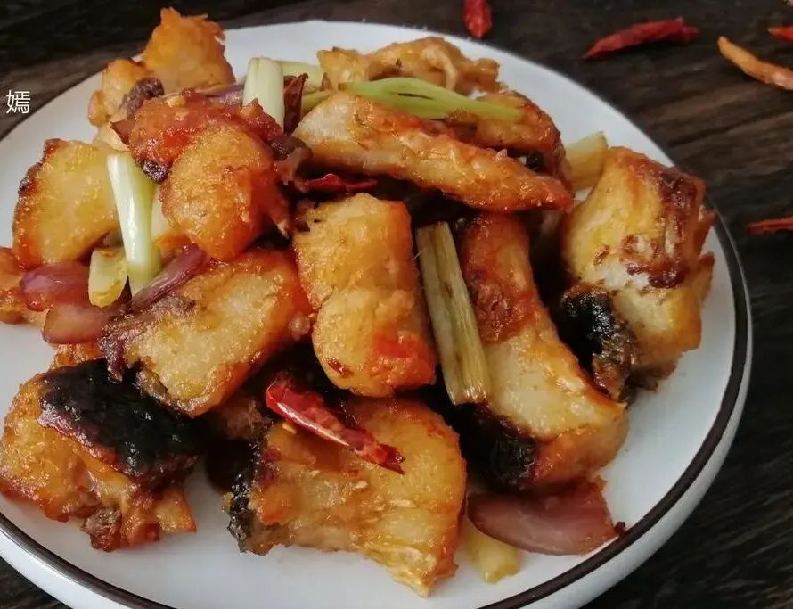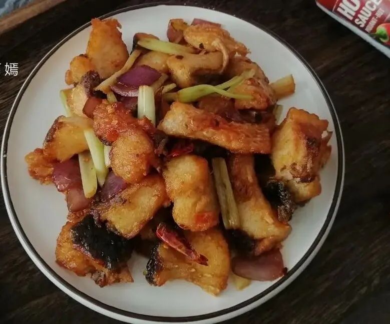 今天和大家分享一个麻辣鱼块,香酥入味,吃起来麻辣鲜香,又有嚼劲,非常开胃下饭,一起来看看具体做法吧! 【麻辣鱼块】 食材:草鱼500克、香芹1根、洋葱半个、辣椒酱1勺、辣椒适量、生抽1勺、淀粉1勺、盐适量、油 做法及步骤: 1、先把香芹切段、洋葱切块、辣椒切丝,辣椒酱准备好。 2、草鱼肉切成小块,不要切得太大。 3、切好的草鱼块放入到盆里,倒入一勺淀粉、一勺生抽、一勺盐,抓匀腌制一下入味。 4、锅里放油,油温5成热的时候,把腌制好的草鱼块放进去炸一下,鱼块放进去的时候不要翻动,等炸的定型之后再翻面,这样不会粘锅。 5、鱼块炸的表面金黄捞出,控一下油。 6、锅里留少许底油,放入香芹、洋葱、辣椒丝煸炒一下,炒出香味。 7、倒入炸好的草鱼块,放入一勺生抽。 8、再倒入一勺辣椒酱,可以提味增色,非常不错。 最后翻炒一下入味,便可以关火出锅了,非常麻辣鲜香的草鱼块,口感又有嚼劲,开胃下饭,草鱼别红烧了试试这个做法,非常好吃。草鱼才5元一斤,女人过了35岁要多吃,养颜抗衰老,皮肤好。