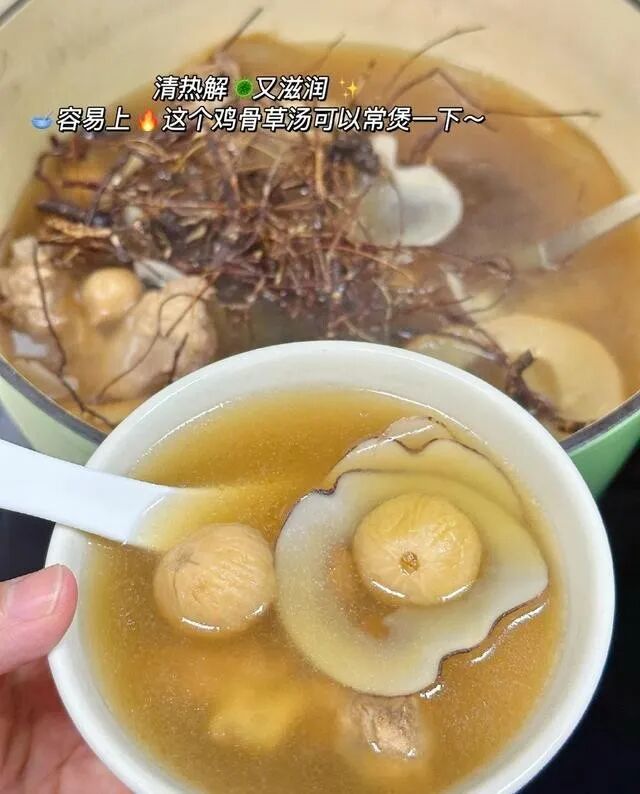 煲了一锅广东人的看家汤 , 鸡骨草猪骨汤 , 连喝3天 , 痘消了 , 通畅了 , 整个人舒服太多。