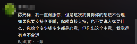 2026年1月19日,慈善家陈光标发布视频喊话李亚鹏,称为其坚持16年的慈善事业而感动,并主动询问李亚鹏需要何种支持,承诺将 “全力相助”。