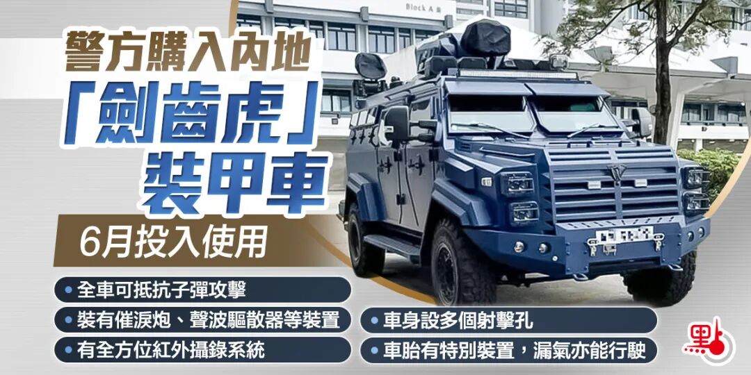 2022年,香港警方購入由內地製造的裝甲車「劍齒虎」並正式投入使用。