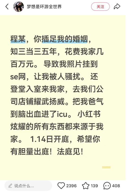 后来才知道,小三一直以一副正宫姿态在公司里招摇过市,甚至代替她以老板娘自居,两人仿佛做了真夫妻一般。这些年,老公背着她给小三花了不少钱。具体数额未知,她只说是天价。