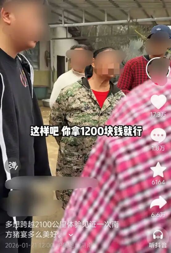 而在1月22日该场杀猪宴的组织方人员尹先生接受极目新闻记者采访时,则是另外一个说法:“杀猪前主人家说免费搞,我们想着事后给他包个红包。可刚杀完猪,主人家突然改口说要场地费。”到底哪个说法更接近事实?目前有关部门还在调查中。