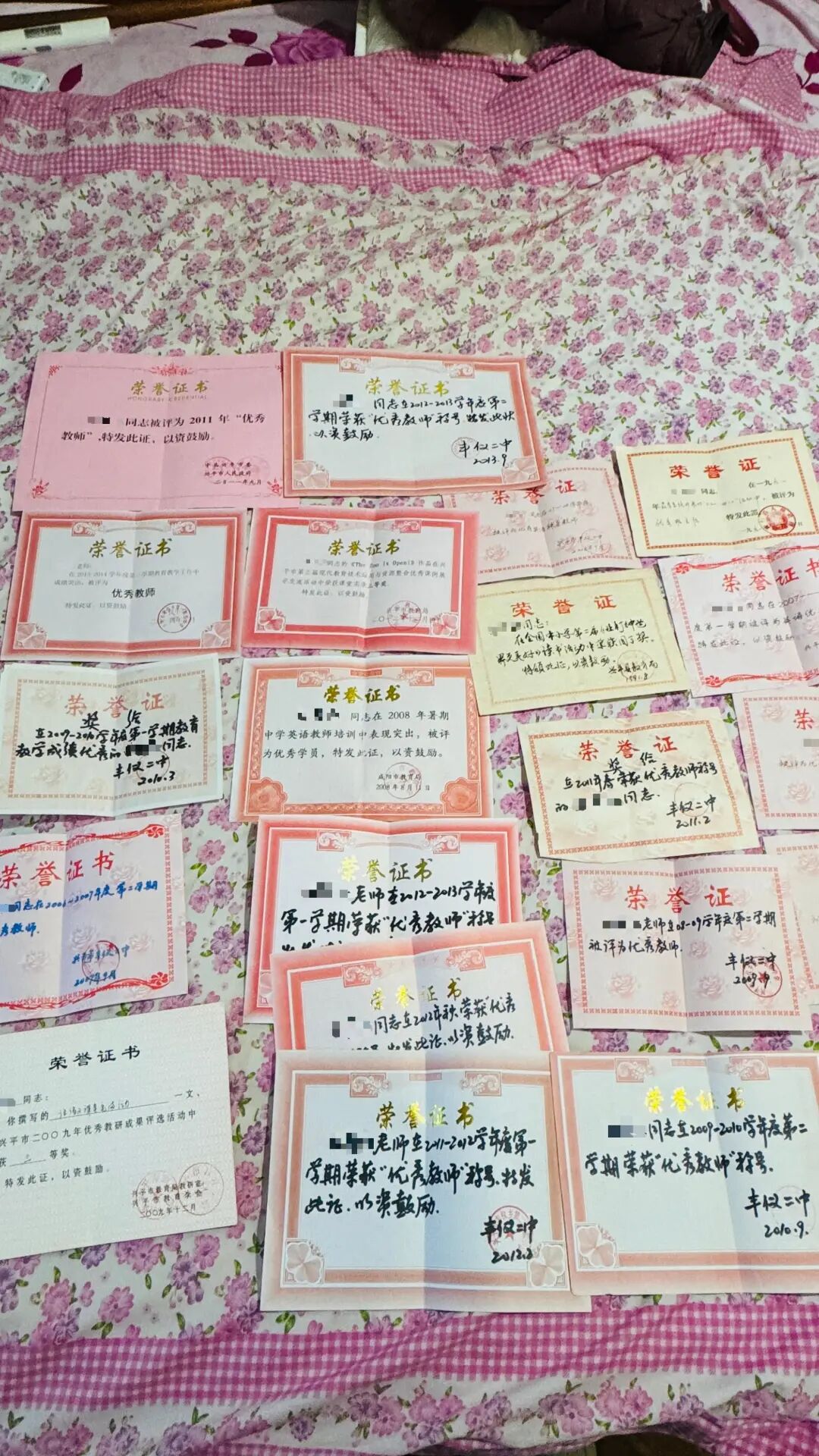 在家属的描述中,白琳性格随和,在学校备受学生喜爱,“年年是先进(教师)”。有次,白琳获评“兴平市优秀教师”,其名字曾在市影剧院张榜公布。说话间,赵正从书柜中取出一沓荣誉证书。但这些从未在家中张贴过,“我们不喜欢张扬”,他说。