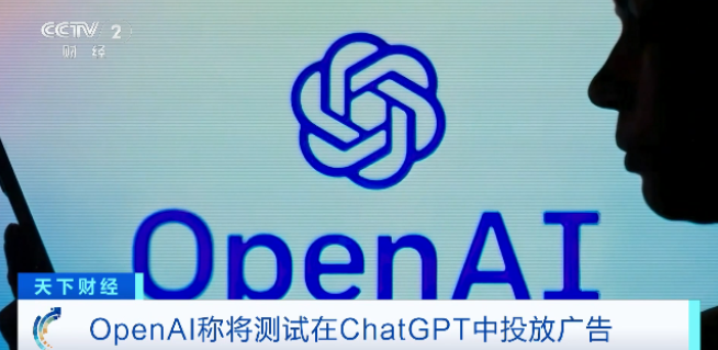 就在他正式起诉的当天,OpenAI 刚宣布要在 ChatGPT 里测试广告投放。图源:央视财经