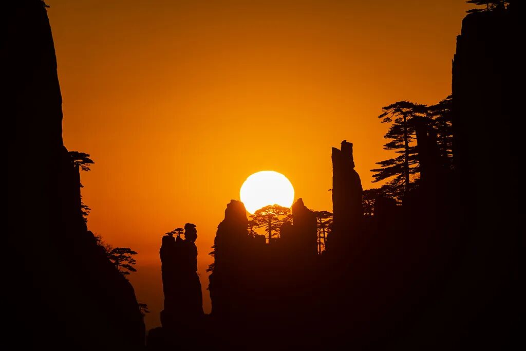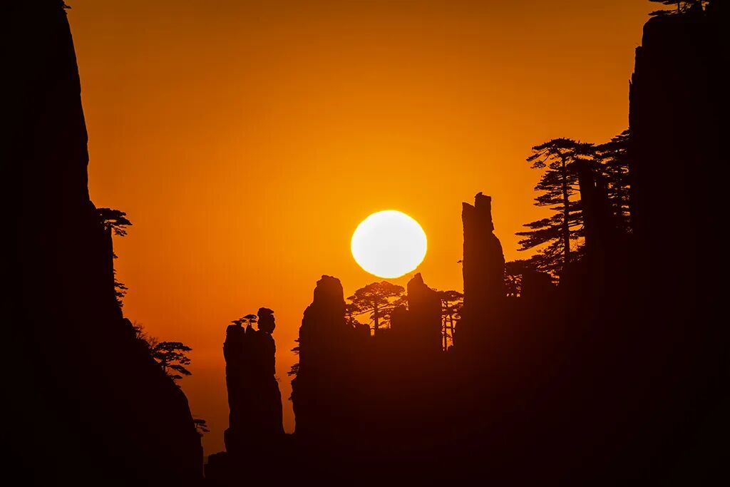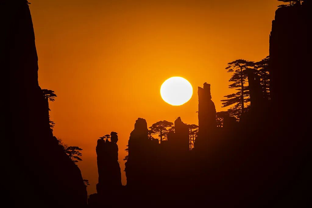 近日,黄山风景区再度出现太阳从“仙人下棋”“仙人下棋”处升起的奇观。 早7点左右,一个橙红色的圆弧从东方地平线冉冉升起,越升越亮,经“仙人下棋”、“仙人观棋”,最后变成一团耀眼的火球,释放出万丈光芒。 这一奇特的景观,惊艳了摄影人和观日出的游客。人们纷纷用相机、手机记录着这神奇的时刻。 拍摄技巧: 1、了解太阳在这处升起的时间和地点,(每年12月和第二年1月,在狮子峰的钟亭处)。 2、使用三脚架来稳定相机,利用小光圈F8-F16左右和低ISO设置100拍摄,保持相片清晰度。 3、用焦段200mm左右的镜头。 4、宁可欠曝,不可过曝。欠曝通过软件将细节调回来,如果过曝就死白一片,细节会被丢失,调不回来了。