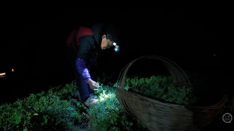 在头灯的光照下,小心地蹲在田垄里,用冬日里冻得微微僵硬的手指,一根根掐下鲜嫩的、冰凉的豌豆尖。