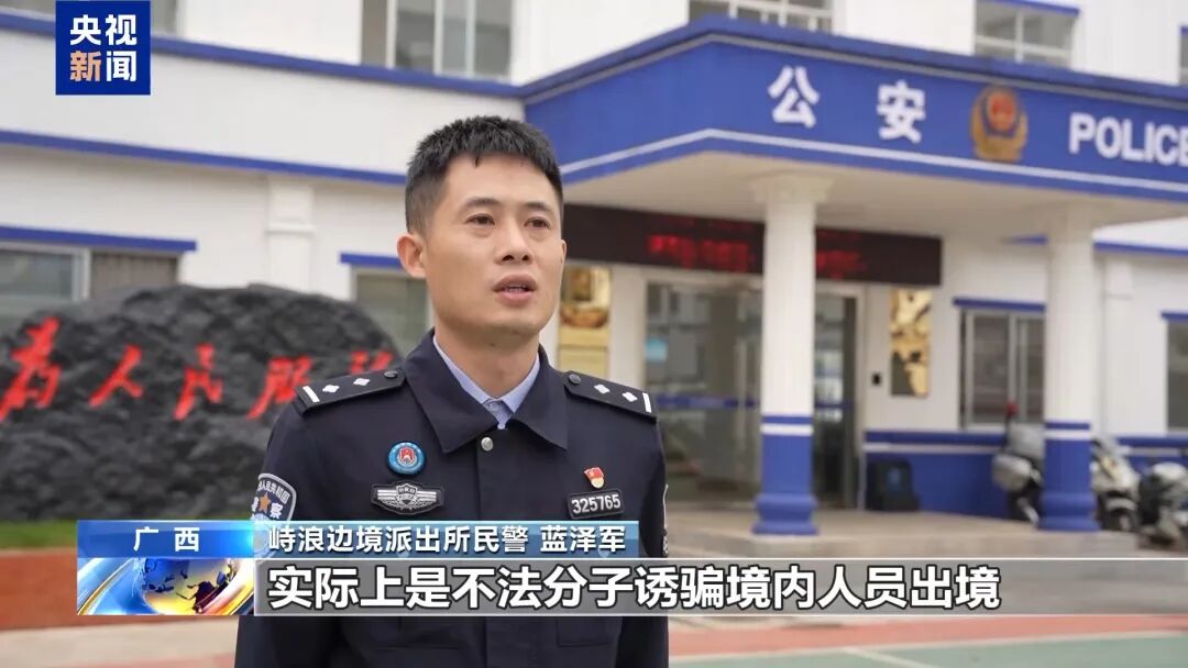 广西崇左边境管理支队民警 邓志盟:我们再次郑重提醒,出境务工务必通过正规、合法渠道,对网络上所谓“低门槛、高回报”的境外招聘信息务必保持警惕,切勿轻信“包路费、包手续、赚快钱”等承诺,以免落入跨境违法犯罪陷阱,危及人身财产安全。