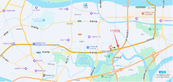 我们能看到,11号线海珠段,大部分的路线都和新滘路是重叠的。