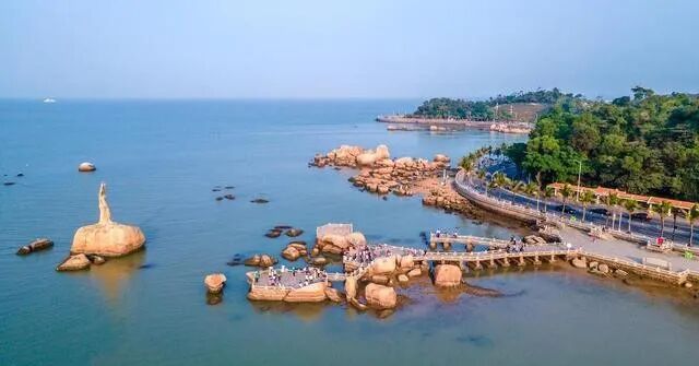 从海滨浴场一路走到珠海渔女 , 中间会经过爱情广场、爱情邮局、灯塔 , 走走停停大概一个多小时。 绿树蓝天配着干净的城市 , 好感度直接拉满!