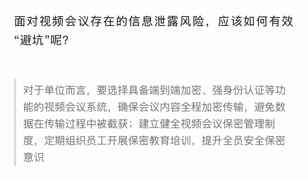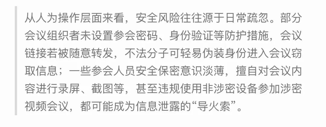视频会议安全频频失守,为我们敲响警钟:视频会议系统若使用不当,可能从高效工具变为信息泄露的“快捷通道”,给国家安全和企业利益带来难以估量的危害。