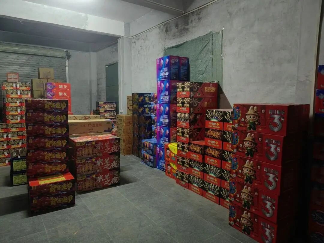 1月21日晚,花都警方在日常巡查中发现,秀全街道乐同村某地有货车正在违规装卸烟花爆竹。民警立即上前处置,当场控制周某、谭某、刘某三名嫌疑人,并顺藤摸瓜找到其背后的非法储存烟花爆竹窝点。经现场清点,共查获各类烟花1146件、爆竹527件、4寸礼花弹396发,涉案物品总重量达10.95吨。目前,周某、谭某、刘某均已被警方依法处理。