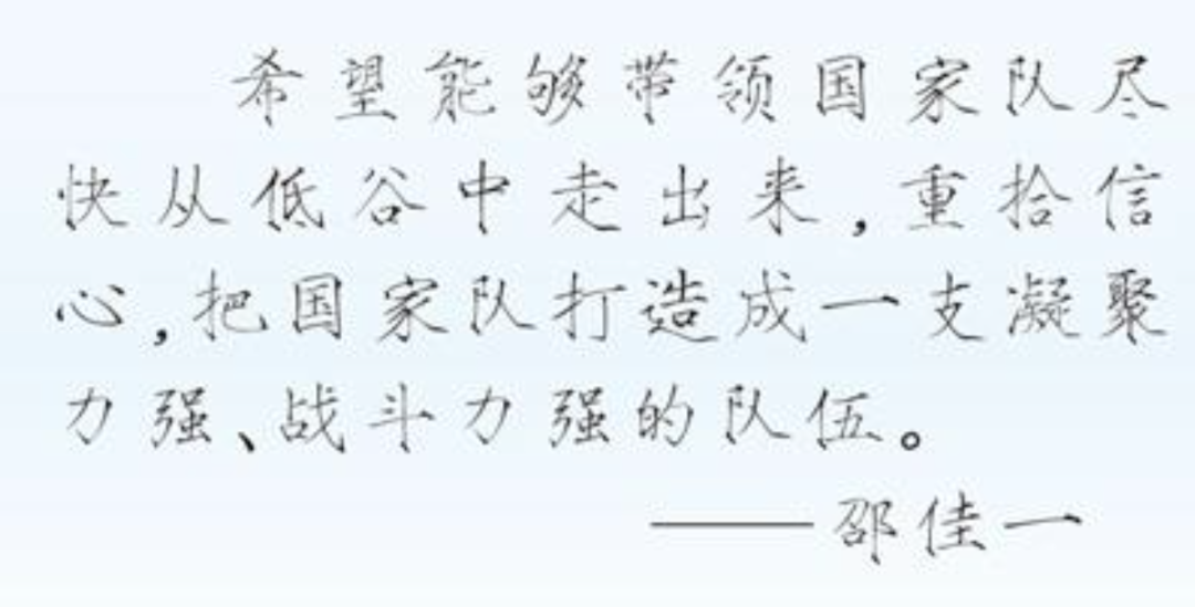 答:我非常理解球迷现在的心情。球迷对待国家队的态度,就像我们辅导自己的孩子写作业,写得不好时,会有种恨铁不成钢的心态。作为国家队主教练,这是一种动力,督促我更好地完成自己的工作。