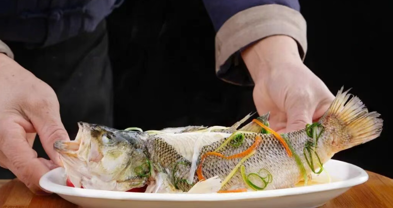 无鱼不成席,清蒸鲈鱼的年年有余最讨喜,蒸鱼不腥的诀窍,一是鱼脊深划一刀让受热均匀,二是盘底铺葱姜架空鱼身,蒸汽能循环起来,