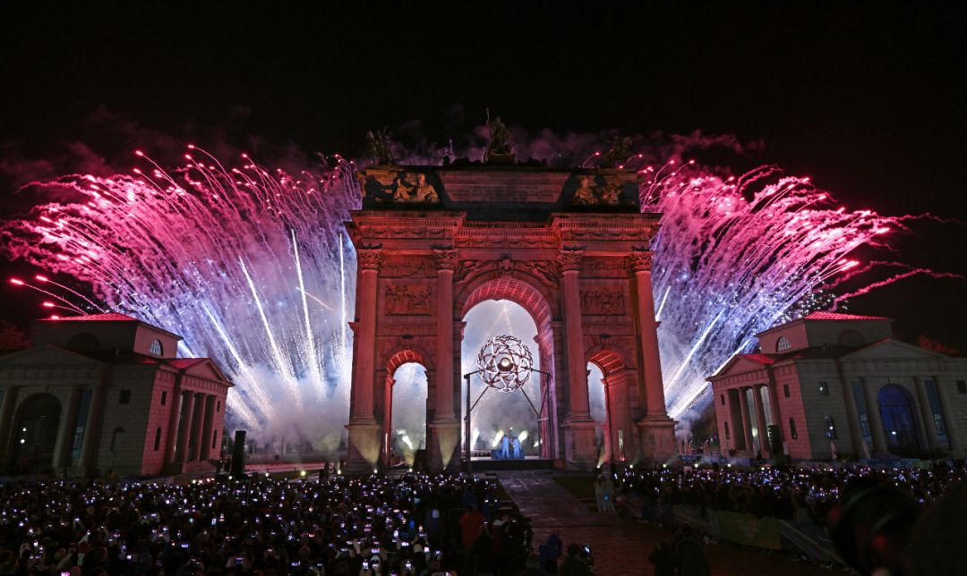 主火炬在米兰和平拱门 和科尔蒂纳迪博纳广场同步点燃