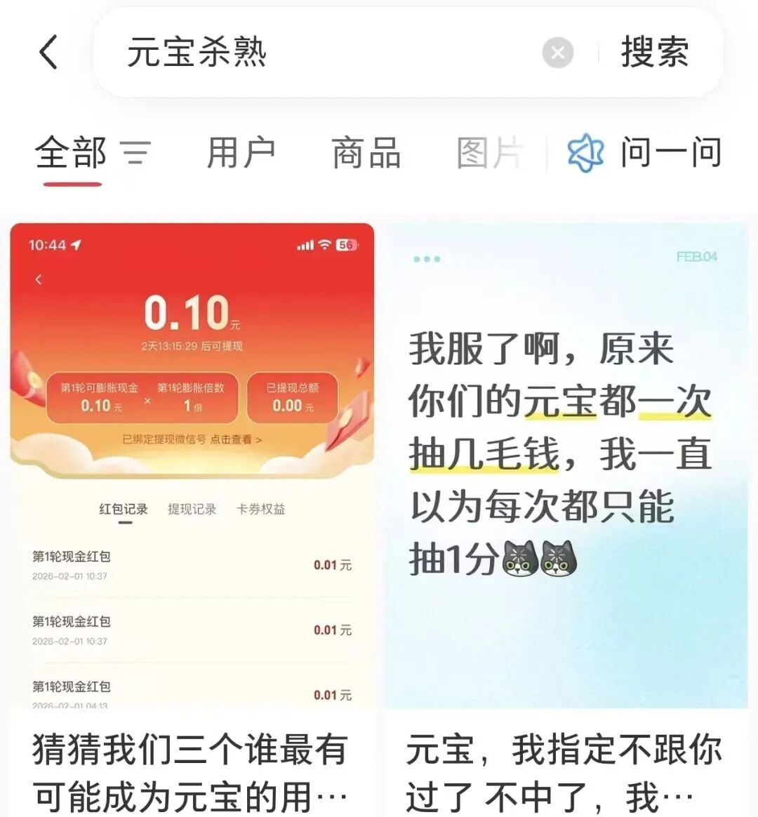 2月2日,就有用户发现元宝的红包越抽越小,拿到的金额从几元降到几毛,甚至几分。元宝的官方评论区也满是吐槽,“打发乞丐也没这样”。