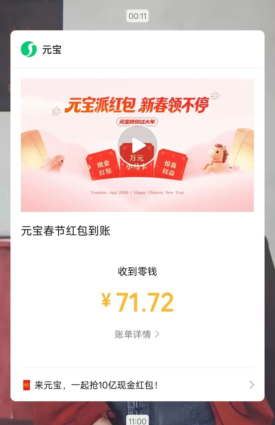 1月26日,腾讯创始人马化腾在年会上放出豪言,要靠撒10亿元红包让元宝复刻11年前微信红包的盛况。