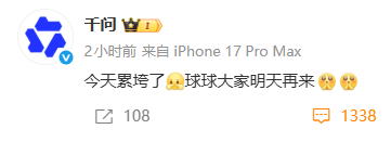 2月6日傍晚,千问在其官方微博发文:“今天累垮了,球球大家明天再来。”