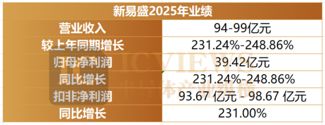 新易盛于1月30日披露 2025年度业绩预告。数据显示,公司预计全年归母净利润为 94 亿元 - 99 亿元,同比增长 231.24%-248.86%;扣非归母净利润为 93.67 亿元 - 98.67 亿元,同比增幅同样超过 231%。以净利润中值 96.5 亿元计算,较 2024 年 28.38 亿元的净利润基数增加约 68 亿元。