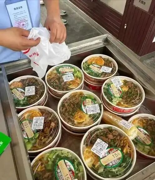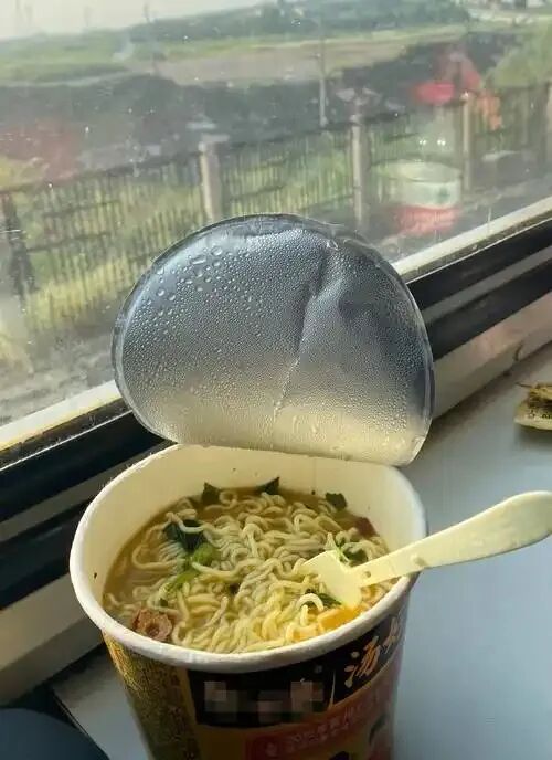 乘客早有准备,自带口粮已成主流,上车前买泡面、面包、水果,成了出门坐车的标配, 泡面三五块钱一桶,泡上就能吃,配上火腿肠、榨菜,十来块钱吃得饱又香,性价比比盒饭高太多,