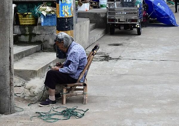 一位老人在子女陪同下