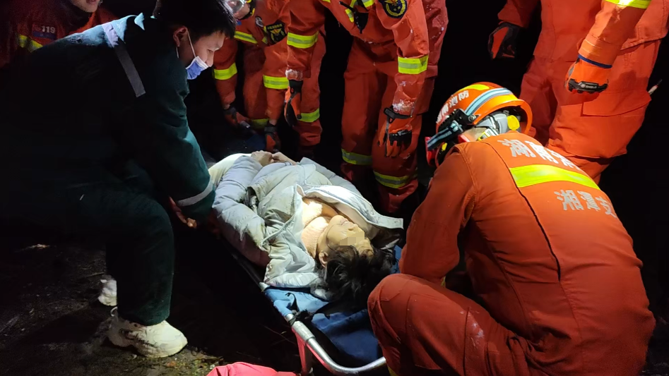 2024年1月22日,湖南湘潭,一家四口不慎从一座约10米高的高架桥上坠落,经消防员紧急救援,四人均被及时送医救治。