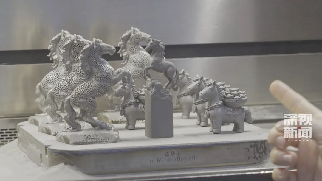 据悉,3D打印图纸可以自己设计,也可以到公开的模型社区里寻找,目前一些工厂也提供设计服务。 “如果我想打印一个生肖马,我就可以到模型社区里挑选喜欢的模型,直接下载下来。3D打印的年货,让我有一种参与感。”刘先生表示,3D打印自带的个性化属性是吸引消费者的关键因素。 眼前这9匹可爱的银色金属小马,是深圳宝安一家工厂新鲜“出炉”的产品,小马的造型设计也由该工厂完成。 “顾客相当于是一个产品经理,只需要提供一个想法,我们这边就有专业的设计师,来实现这个需求。”思锐增材(深圳)科技有限责任公司市场部销售经理李创说。 由于3D打印极大压缩了从创意到产品的中间成本,3D打印服务从过去的“以产定销”,转向了“以需定产”。个人的微小创意,得以瞬间调动庞大的产业链资源。