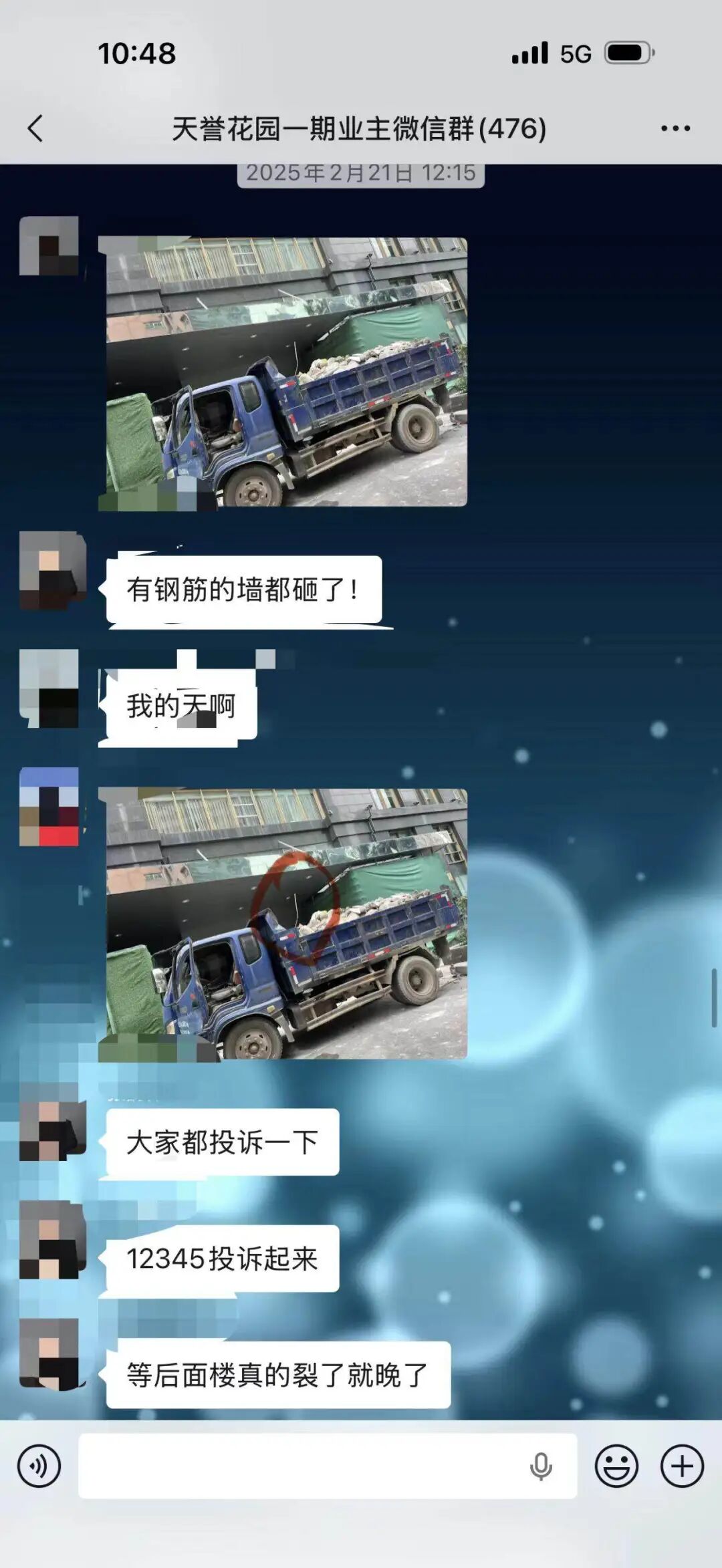 小区业主群截图显示去年二月项目已动工