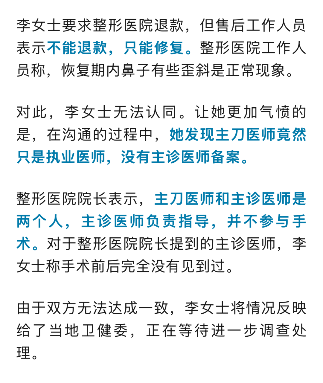 女子花2.7万整鼻子失败像阿凡达:主刀医师只是执业医师