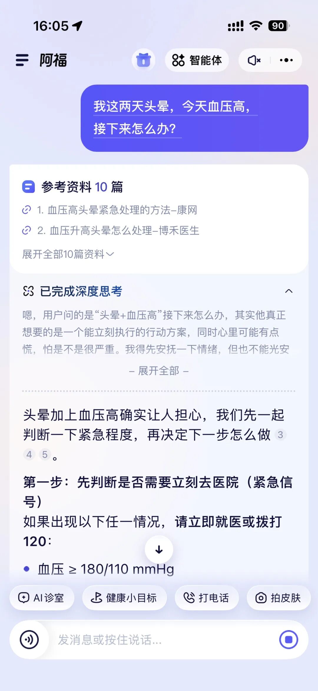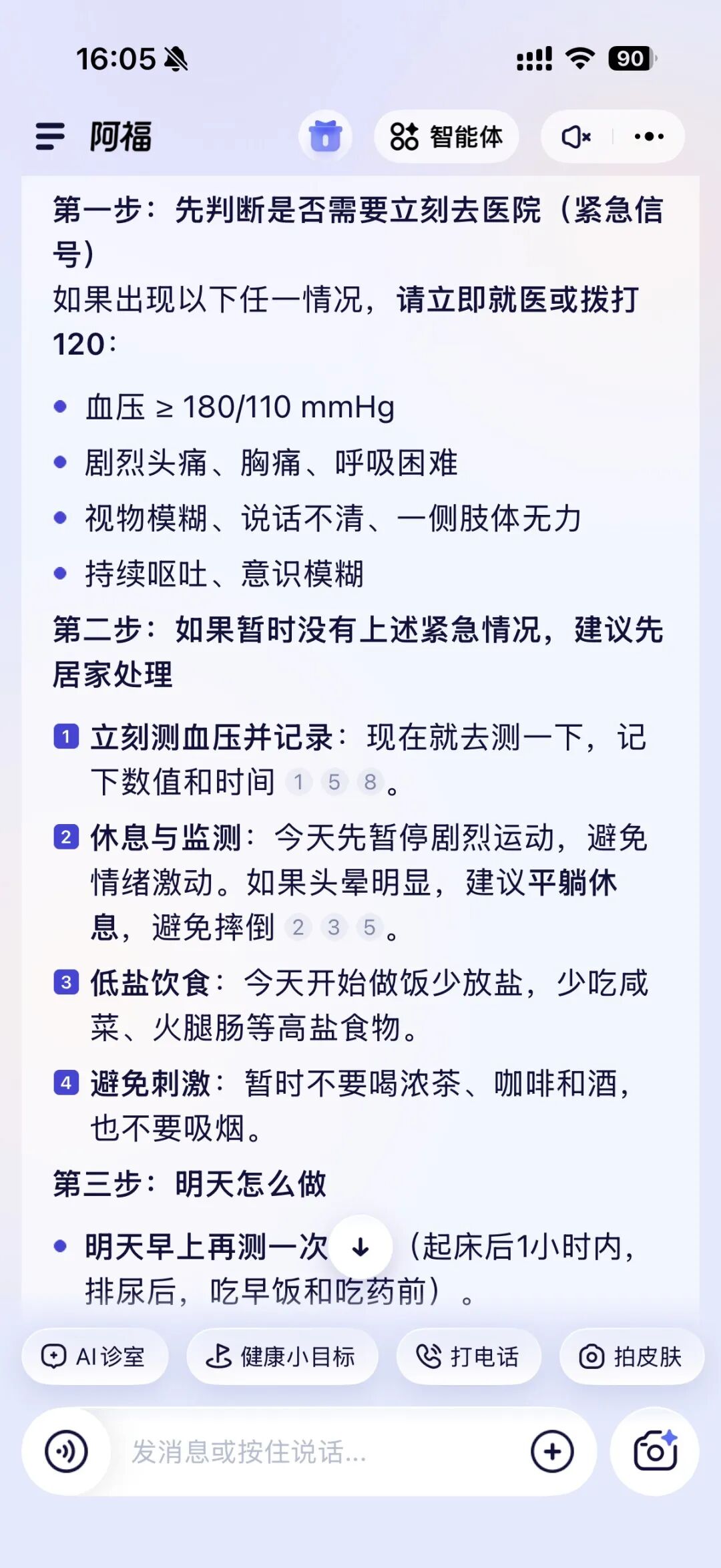 ✅ “我这两天血压有点高,怎么办”