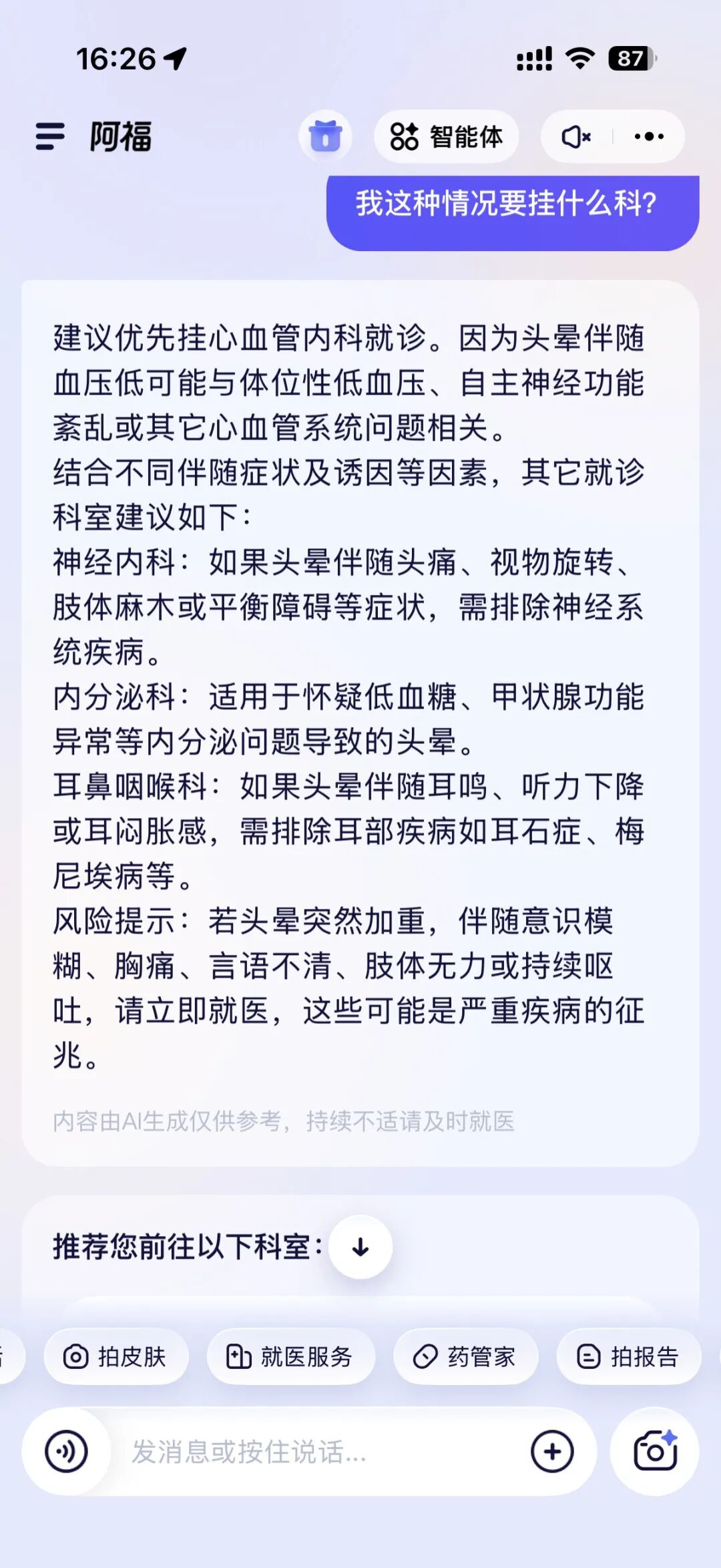 ✅拿不准挂什么科?直接问,它会根据症状推荐;
