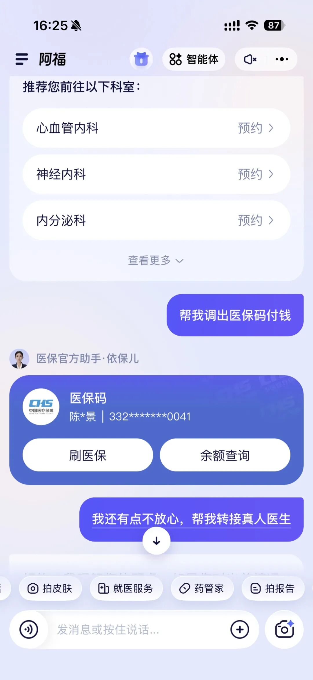 全程没广告、不弹窗,操作门槛很低。再加上它直接打通了医保码,挂号、刷码都能在里面搞定。对老年人来说,相当于一个能随时问、能帮忙办事的健康助手。