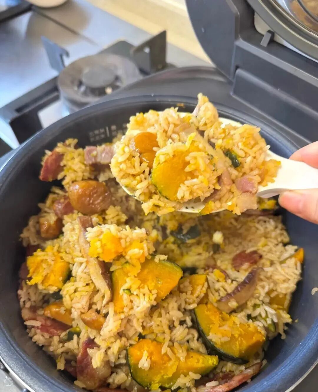 南瓜板栗香肠焖饭