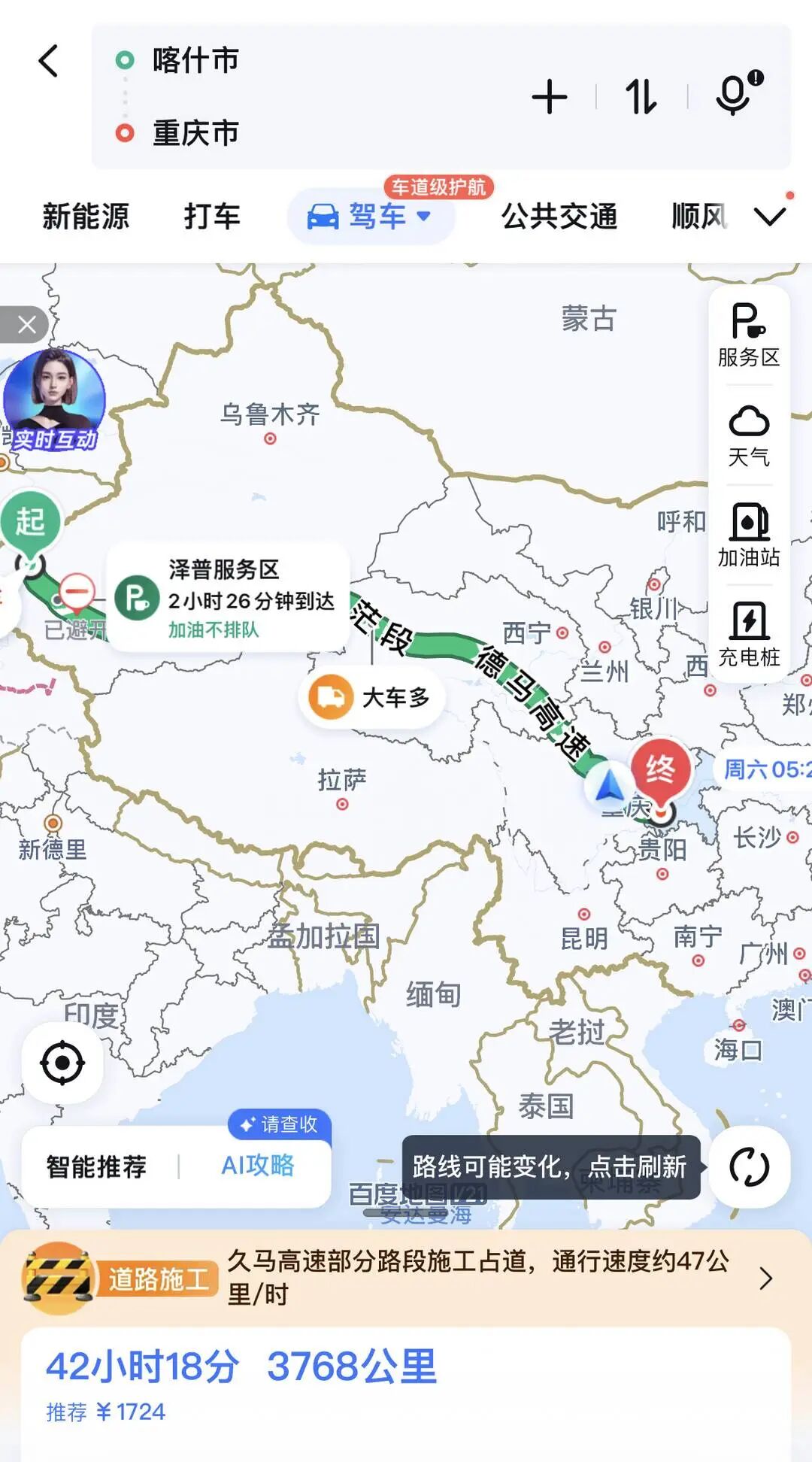 新疆喀什到重庆的高速费为1700余元