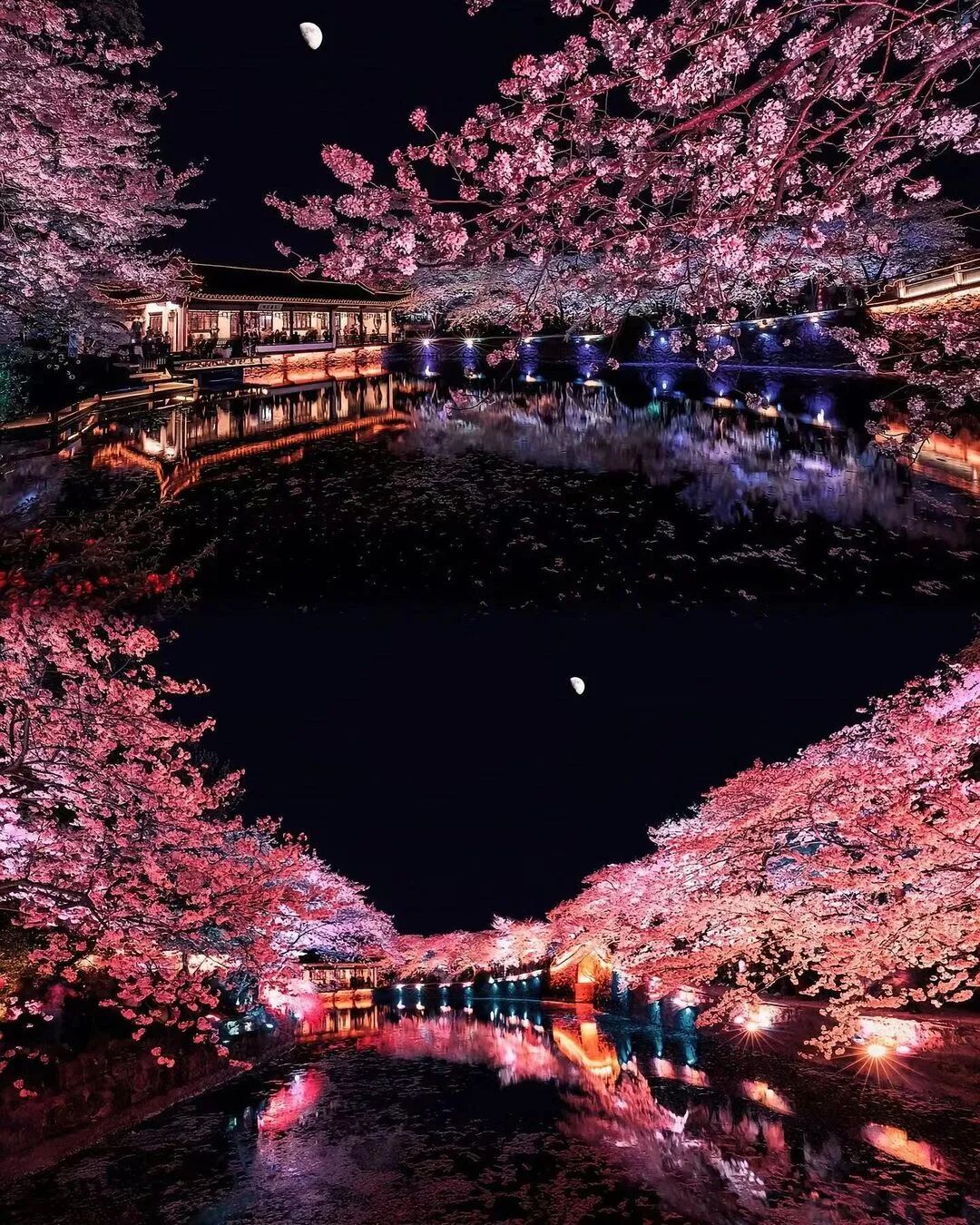 夜樱!一定要去!每天17:00鼋头渚园区内二次验票开始夜樱场,园区内LED灯光打在樱花上