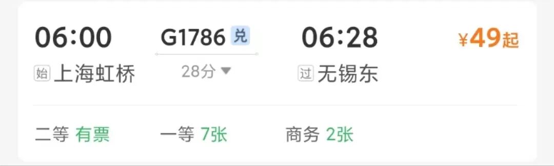 从上海去无锡直达高铁仅49元