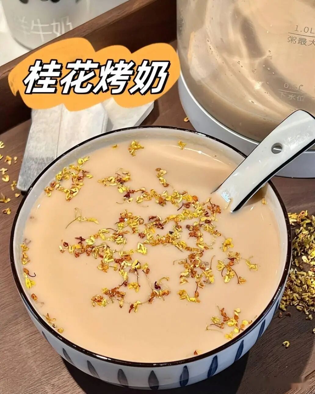 所需食材:牛奶500毫升、红茶包2个、桂花适量、白糖20克、淡奶油适量(可选)。