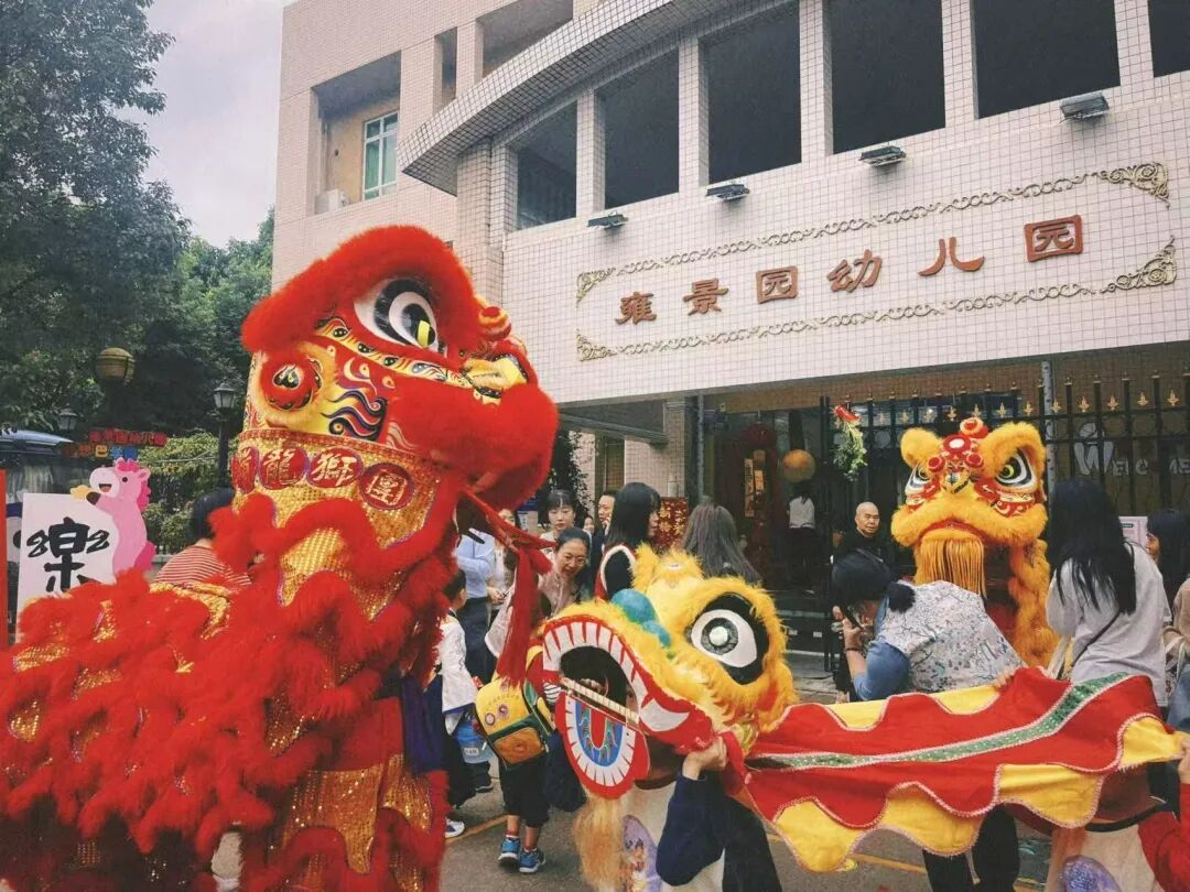在雍景园幼儿园,醒狮表演为开学仪式增添年味。 学校供图