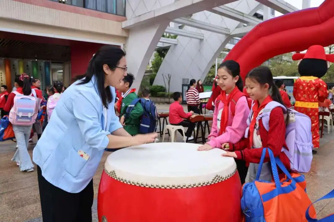 “一击鼓,敬长辈,明志向;二击鼓,爱学习,勤努力……”击鼓鸣志环节中,同学们排队击鼓,清脆的鼓声里满是对新学期的期盼。