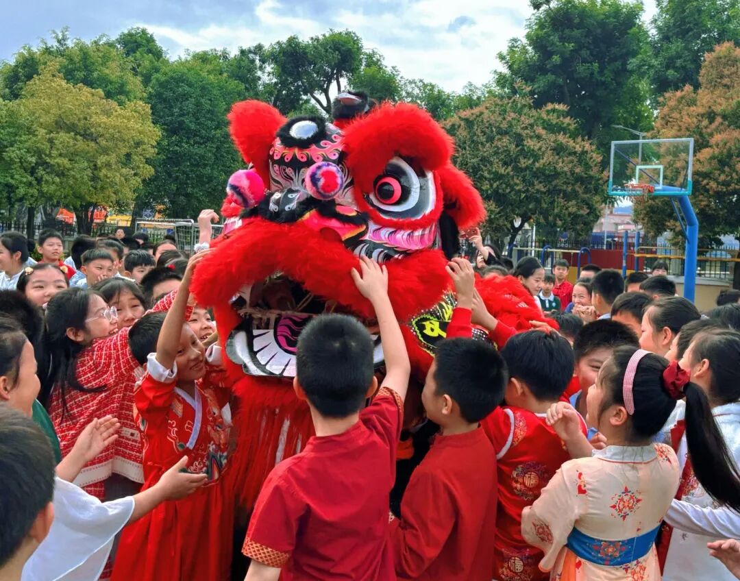 他们有的手拿装着甜蜜蜜的糖果红包,向“财神爷”互相祝福新春快乐;有的敲锣打鼓庆祝开学;有的舞龙舞狮尽情玩耍,逗乐采青。师生们用朴实的生活气息传承中国传统文化,共同表达美好的祝愿。