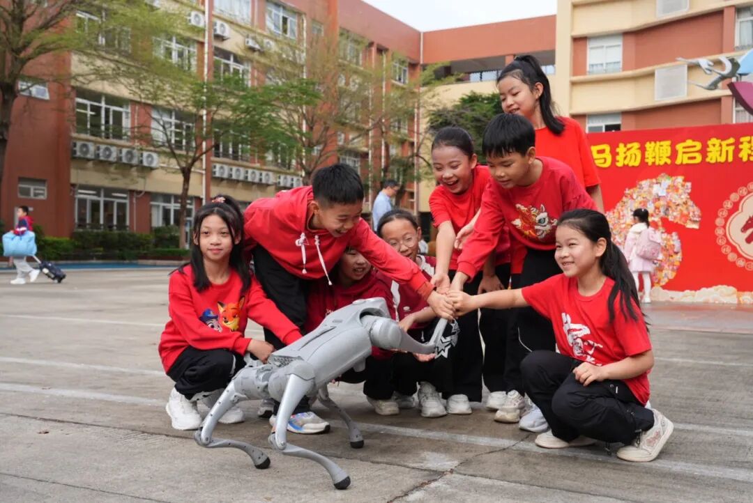 在校门口,憨态可掬的机器狗成为今年迎新的“明星”和“团宠”,它的到来让学子们惊呼,机器狗的精彩表演,为孩子们带来童趣和科技融合的校园体验。