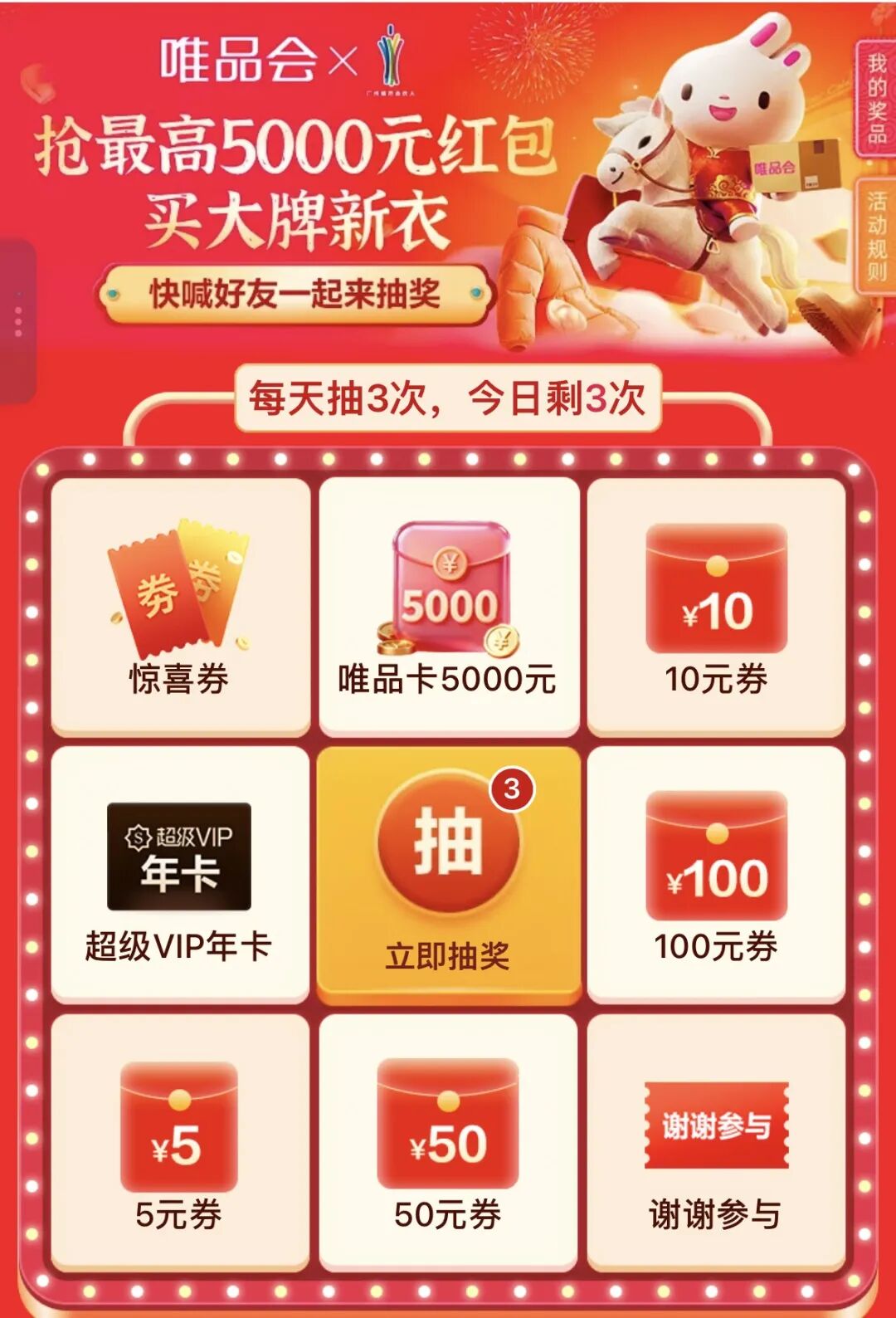 同时,唯品会加码升级新春好礼,投入百万红包,倾情送出超28万份好礼,其中包括10份5000元免单惊喜大礼、20万份满减优惠券、6.5万份随机惊喜券以及2万份唯品会超级VIP年卡,整体福利投入较去年增加37.5%,让市民在欢度佳节的同时收获满满实惠,实现了城市文化传播与品牌口碑提升的双向双赢。