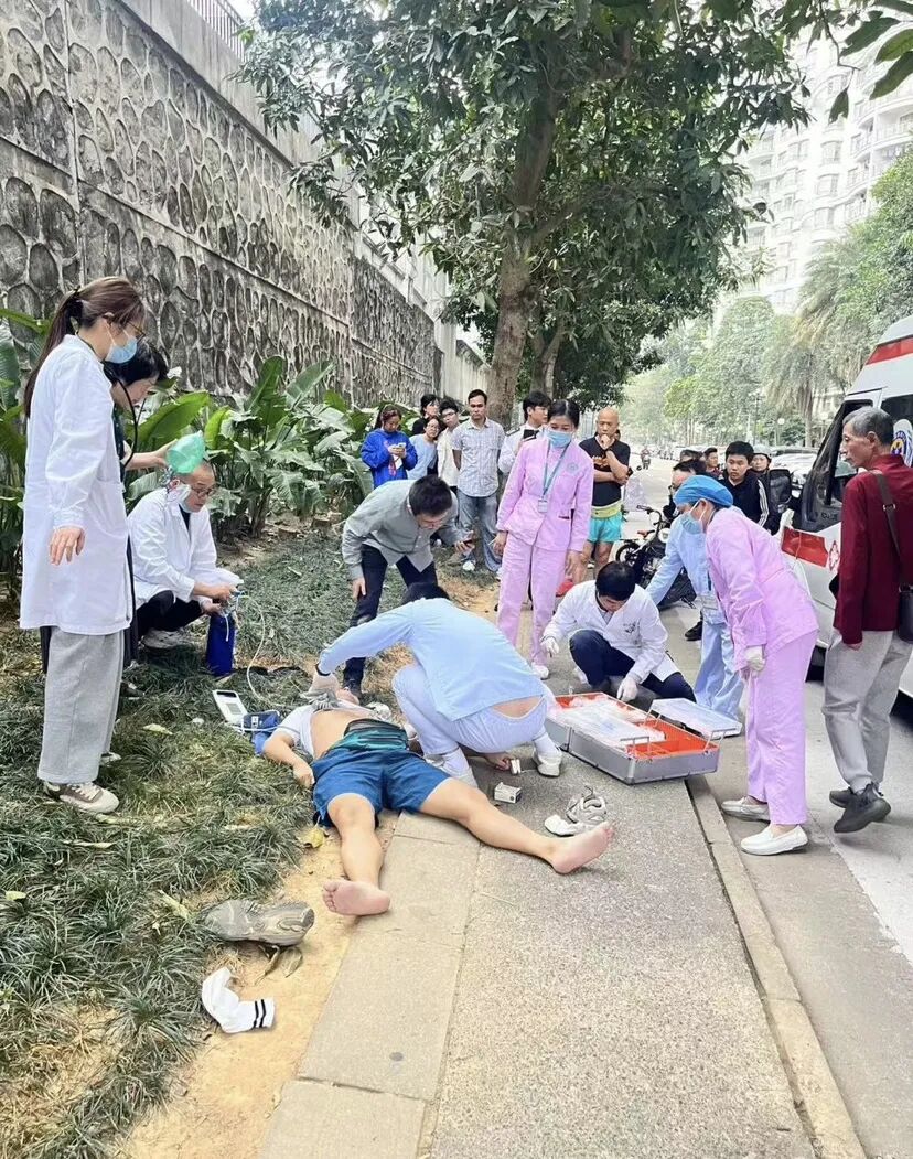 2月25日傍晚,广州市番禺区祈福新邨街头,一名男子突然倒地、心跳骤停,此刻番禺区中医院住院总医师蔡少鹏正好下班途中经过,当即挺身而出、跪地施救,与急救团队默契配合,成功将患者从死亡线上拉回。目前患者已脱离生命危险,正在康复中。