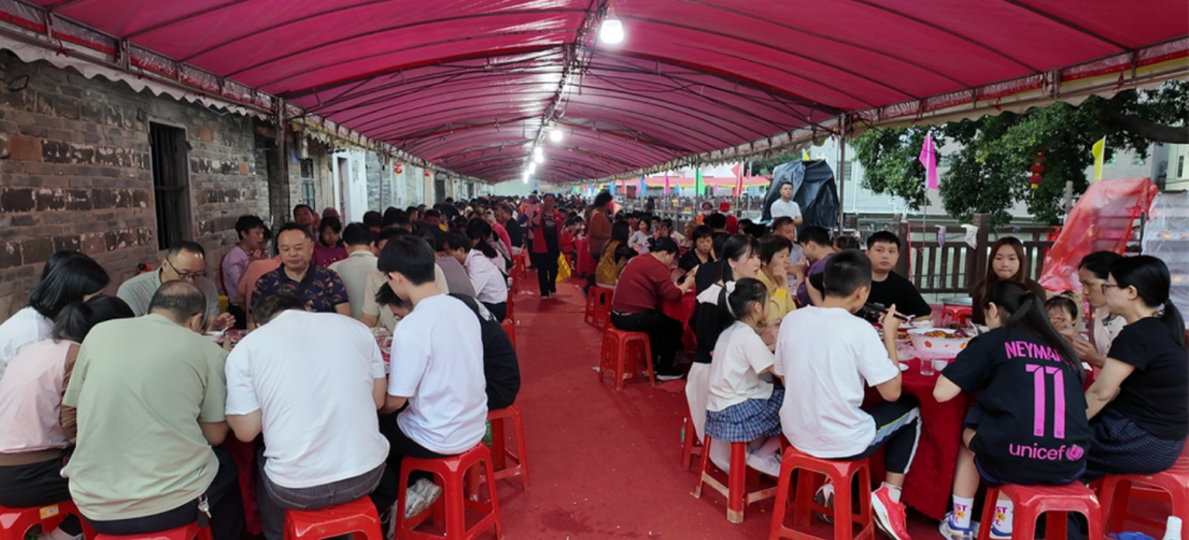 当晚,4000多名村民与宗亲围坐在一起,共同享用团圆宴。经典的烧鹅、寓意吉祥的猪手等特色佳肴香气四溢。大家举杯同庆,共话家常,其乐融融。“这是我们村第一次举办这么大规模的活动,大家都非常高兴。希望年轻一代知道家族是如何发展壮大的,把尊老爱幼、家庭和睦的传统传承下去。”白沙村村民杨学能说。